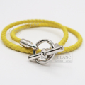エルメス レザーブレスレット ”グレナン” ドゥブルトゥール ライム スイフト シルバー金具